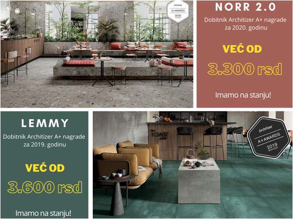 Dobitnici Architizer A+ nagrade za 2019. i 2020. godinu LEMMY – serija dobitnik Architizer A+ nagrade za 2019 godinu. Ideja kojom su se vodili u fabrici Mirage je da proizvedu granitnu keramiku koja će imitirati stari i greban metal koji je dobio patinu prolaskom vremena. Boja se razlikuje od originalnog sjaja metala i neprozirnih…